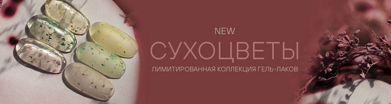 В основе гель-лака натуральные сухоцветы на полупрозрачной основе.