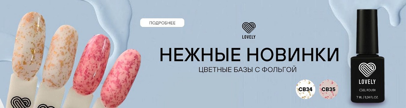 База цветная с частицами золотой фольги Lovely, Colored Base 34 и база цветная с частицами розовой фольги Lovely, Colored Base 35
