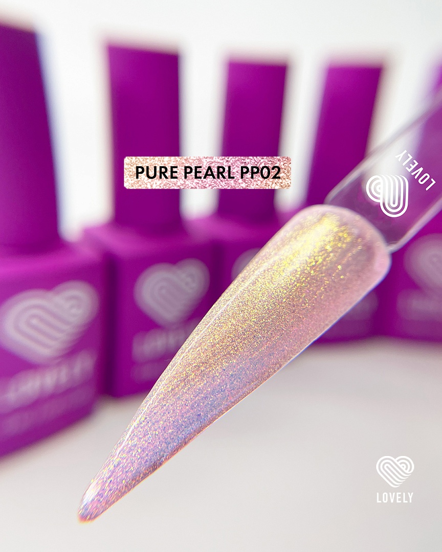 Гель-лак Lovely, коллекция Чистый Жемчуг "Pure Pearl" PP02 - светло-розовый гель-лак с золотым шиммером и перламутровым переливом.